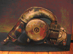 Lorsque le temps le lui permet, Vo Binh, jeune peintre vietnamien issu de la nouvelle vague asiatique, laisse son imagination vagabonder au gré de ses fantaisies. Un jour, lors de pérégrinations mécaniques dans des marchés spécialisés, il est fasciné par les pièces de motos et de voitures usagées, négligemment exposées au regard du chaland. Ruisselantes d’huile et d’essence, oubliées sur un étal poisseux, il les imagine trônant sur une toile