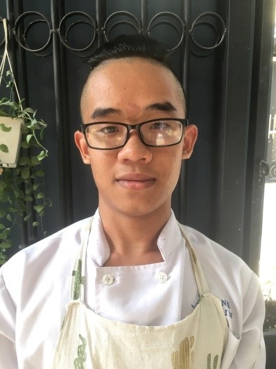Thuan est le premier jeune à avoir d’abord fréquenté une école de boulangerie/pâtisserie au Vietnam avant de venir renforcer sa formation. Thuan a quitté sa famille très tôt et a vécu dans la rue avant d’avoir la chance de rencontrer plusieurs associations qui l’ont mené là où il est aujourd’hui. Il a eu la chance d’intégrer la première « fournée » des jeunes des rues inaugurant l’Ecole « La Boulangerie Française » à Saigon ; il s’est montré curieux et est devenu l’un des meilleurs éléments. Il est arrivé à Bruxelles en septembre 2019 pour intégrer la prestigieuse pâtisserie De Baere où ses collègues l’encouragent chaque jour à s’améliorer.